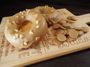 キャラメル味の生地にキャラメル掛けしたナッツととチョコレートをトッピングした 香ばしい風味のドーナツです。