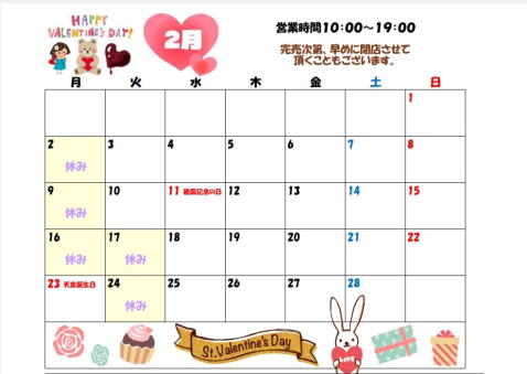 2月の新商品情報、定休日のお知らせ
